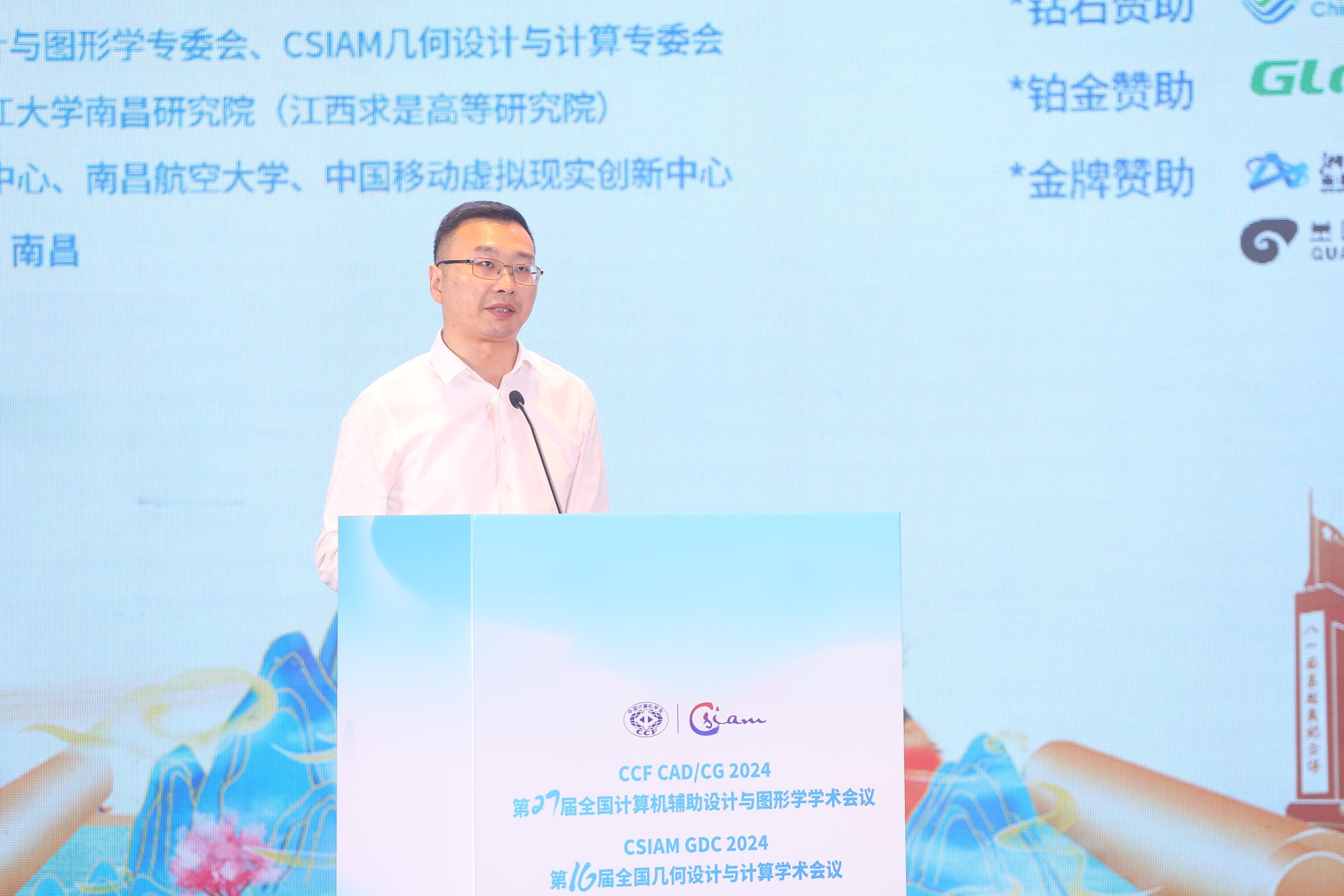 8月16日上午,第27届全国计算机辅助设计与图形学学术会议(CCF CAD/CG 2024)、第16届全国几何设计与计算学术会议(CSIAM GDC 2024)(以下简称“联合大会”)在江西南昌开幕。中国工程院院士谭建荣,中国科学院院士胡事民出席大会。南昌市委常委、市人民政府副市长赵捷,CCF 专委工委执委、合肥工业大学副校长汪萌教授,CSIAM副理事长、湖南国家应用数学中心主任黄云清教授,大会主席、CCF计算机辅助设计与图形学专委会(CAD&CG)主任、浙江大学周昆教授,大会主席、CSIAM 几何设计与计算专委会(GDC)主任、中国科学技术大学刘利刚教授,大会主席、拉斯维加斯
