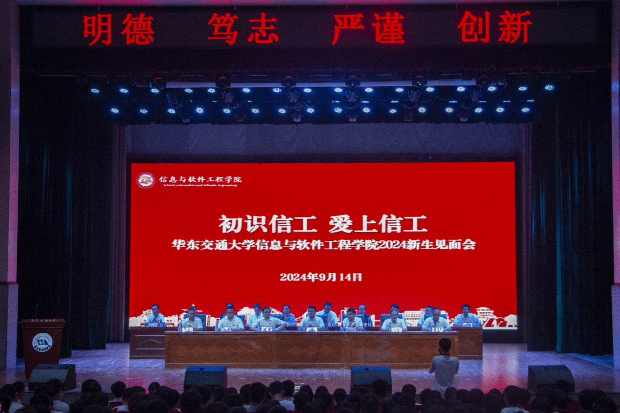 在南区礼堂举行以“初识信工 爱上信工”为主题的2024级新生见面会。院长姜楠、院党委书记魏永峰、副院长罗晖、副院长张利华、副院长袁朝晖、副院长官雪辉出席会议,各系(部)主任、全体辅导员以及2024级全体研究生、本科生新生共计1400余人参加会议。会议由学院党委副书记冯荣刚主持。