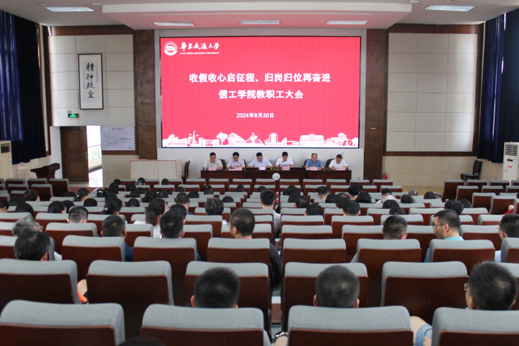 姜楠宣读了学院《关于聘任系(部)、学科负责人的通知》(华交信工〔2024〕9号)及通报近期受表彰的个人,提振了学院教职工的荣誉感和进取心。随后,他全面阐释了学院设立的深远意义、当前师资力量、学科布局、专业发展路径及人才培养战略等。他号召全体教职工要统一思想认识,明确发展目标,汇聚磅礴力量,以“二次创业”的昂扬斗志,展现“想干事”的激情、“在干事”的状态和“干成事”的追求。他指出,要锚定大项目、大人才、大成果、大平台、大专业、大双创六大核心目标不放松,全力推动学院高质量发展,为学校“双一流”建设贡献信工智慧与力量。