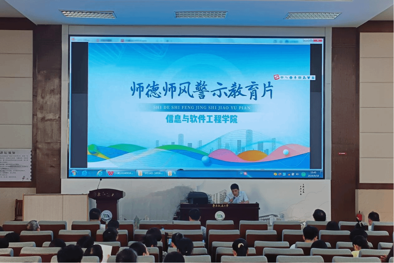 9月18日,信工学院在南区图书馆202孔目湖讲坛召开师德师风建设月动员会暨警示教育活动,全体教职工参加会议。会议由学院党委书记魏永峰主持。