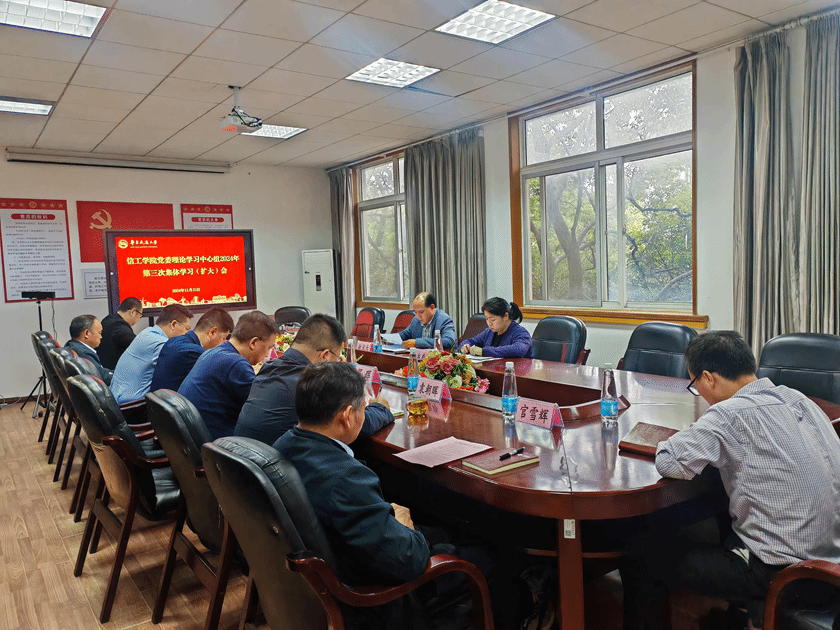 11月15日,信工学院党委理论学习中心组举行2024年第三次集体学习(扩大)会,院党委书记魏永峰主持。材料学院党委书记赵龙志,党委组织员孟书慈列席旁听。