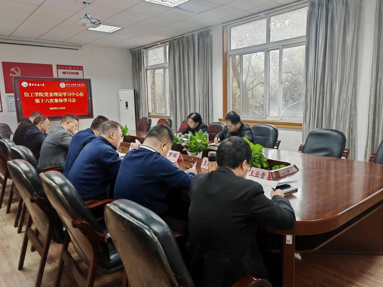 11月7日,信工学院党委理论学习中心组举行2025年第十六次集体学习会,围绕“深入学习党的二十届四中全会精神,准确把握‘十五五’规划建议战略部署”进行专题学习研讨。学院党委书记魏永峰主持学习会,中心组全体成员参加学习。艺术学院党委书记廖芳、党委组织员彭洪毅列席旁听指导。