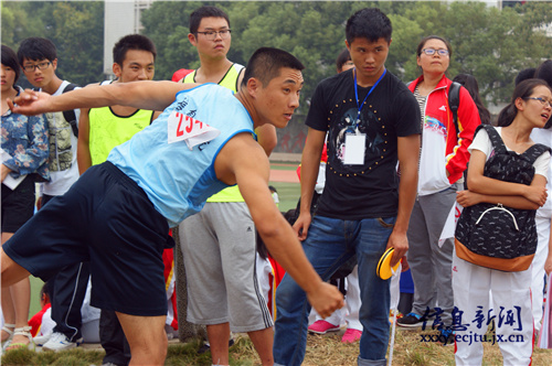 9月25日下午,在我校运动会男子铅球比赛中,信息学院实力选手张秋岩以11.30米的优异成绩打破原校运会记录,获得校运会铅球比赛第一名。