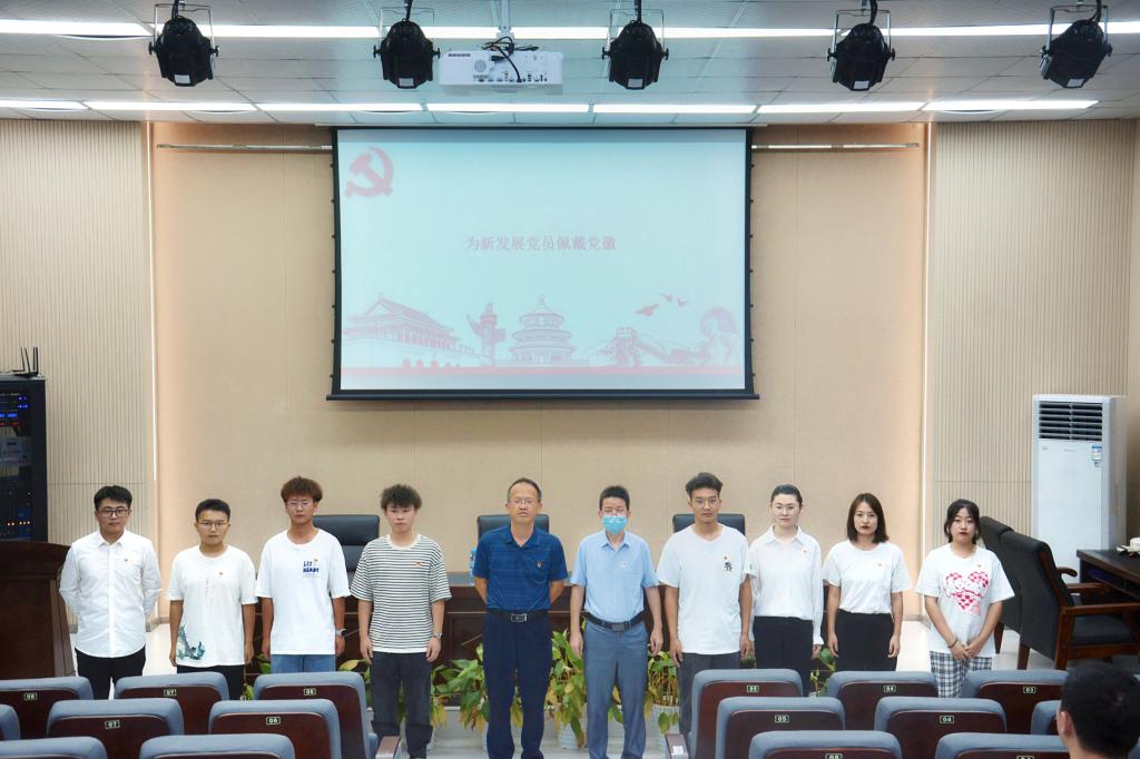 何仲坚、黄清华为新发展党员佩戴党徽,彭凌欣代表新党员作表态发言,全体新党员举行入党宣誓仪式。