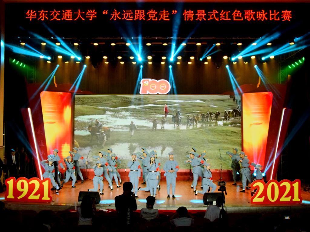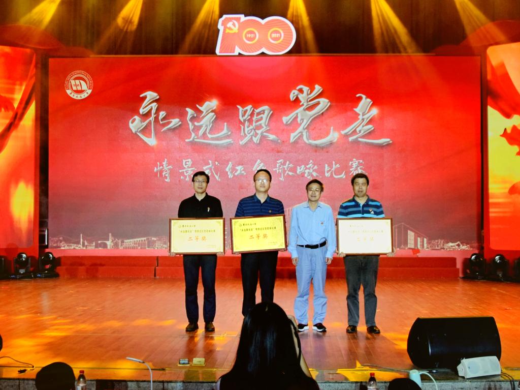 于南区礼堂举办“永远跟党走”情景式红色歌咏比赛,信息学院荣获二等奖。