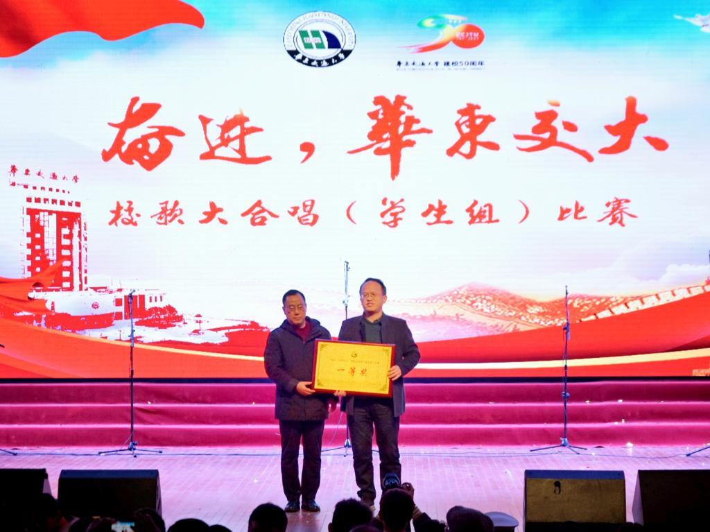 为纪念“一二·九运动”85周年、喜迎校庆50周年,12月9日,华东交大于南区礼堂举办“奋进,华东交大”校歌大合唱比赛。信息学院以9.41的高分获得一等奖。