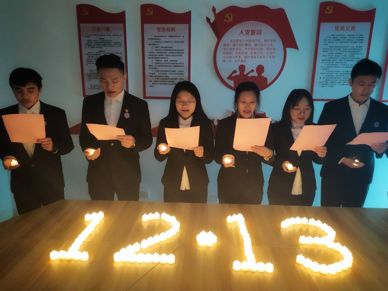 “亘古浩劫,文明罹难,百年悲叹,警钟鸣响。”13日当晚,于信息学院15栋党员工作站旁,信息党教中心及学生会成员身着正装、手托蜡烛,面对着电子蜡烛摆成的“南京”的字样,庄严地诵读悼念词。回想着惨痛的历史,学子们肃穆低头,敛声默哀。之后,学15栋宿舍部分熄灯,信息学子们用一个个寝室的灯光汇成“1213”的字样来表达哀思。