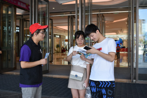 信息志愿者向路人发放传单