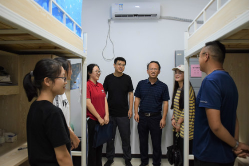 9月1日,信息学院院长赵军辉、党委副书记何仲坚、学工办主任陈文锦来到信息学院2019级新生男、女寝室走访慰问新生。全体2019级新生带班党员陪同。