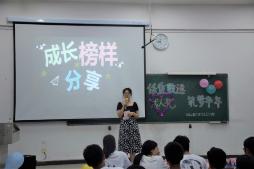 活动分为“回忆、激励、立誓、立志”四个环节。“讲述成长历程的PPT、报到时家长和带班党员的‘深情寄语’”看见电子白板上播放的内容,在场新生无不动容。主持人以提问的方式邀请新生分享迄今为止对自己最重要的人与事,或是讲述关于未来的梦想。新生们踊跃发言,他们那一句句情真意切的话语赢得了在场同学们的掌声。