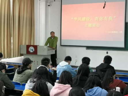 陈文锦对两个班级近两学期来的学习、成绩情况做详细概述,针对班上同学消极的学习态度,他认为学风建设尤为迫切,也非常必要。“学习目的何在?其不仅仅是对书本课程、专业知识的学习,新时代的大学生更要学会统筹兼顾,全面发展,提高自己的综合素质。”他引经据典,娓娓道来。打铁还需自身硬。他劝诫同学们要树立三“住”观念:沉得住气,放得住心,耐得住寂寞。