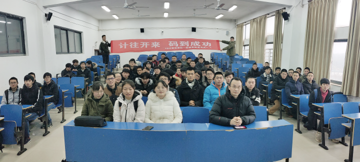在寒风凛冽的考试周迎来之际,15计算机系的同学们也迎来了大学四年的最后一堂理论课。为了纪念这意义非凡的时刻,2019年1月11日,15计算机系在这堂课的结束之时同曾辉老师合影留念,拉横幅“计往开来,码到成功”以示对过往的眷恋和对美好未来的期许。