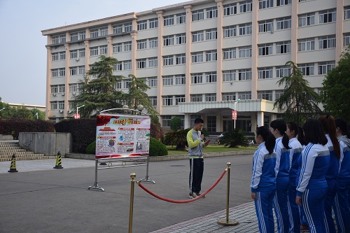 学生代表们在纪念改革开放四十周年的展板前发表演讲。“改革开放 40年,我国在经济建设、科技发展、文化教育、社会保障等领域取得了不俗的成就。”,“我国的GDP总量不断提高、神舟号系列载人宇宙飞船、探月行动等航天航空技术不断发展……”一项项改革成就让在场的同学们民族自豪感油然而生。