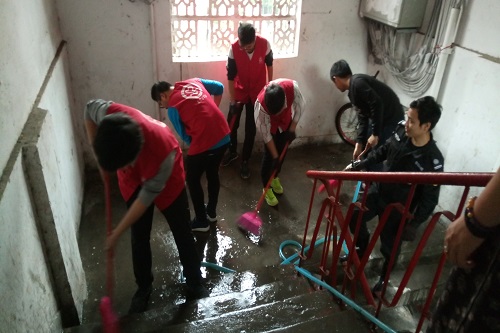 有的同学爬了十多层的楼清理楼道,有的则钻进数十厘米的小巷口,捡起死角的垃圾。3月末的南昌已经略显炎热,在连续工作了三个小时后,大家都精疲力竭,汗水湿了一身,但是每个人都感到十分满足。