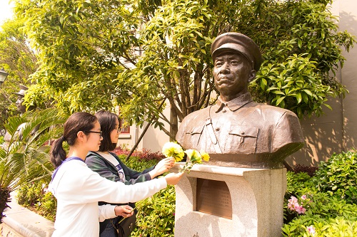 同学们为总司令鲜花
