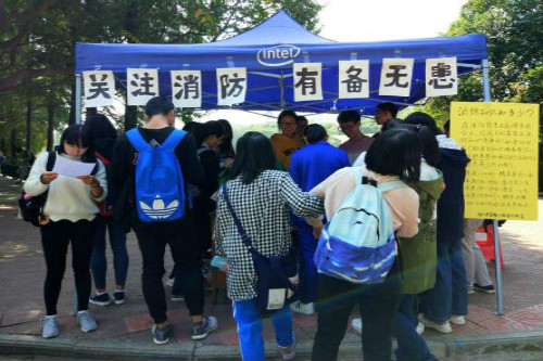 为了增强同学们的安全意识和防范意识, 10月26日,信息学院16级计算机一班在南区一食堂门口举办了主题为“消防安全、预防火灾”的有奖竞答活动。