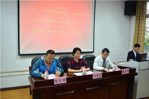 10月20日,信息学院于教4栋307室召开第十六届学生会及团学组织换届大会。信息学院党委副书记田艳霞、学工办主任黄清华、团委书记陈文锦出席本次大会。