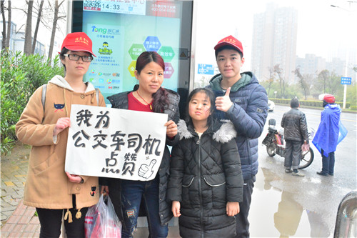 为实践雷锋精神,3月19日,世纪英才学校信息工程学院分校五期全体成员携手青年志愿者协会,头戴“小红帽”,身披红色“雷锋衣”,来到南昌市红谷滩配套中心,为公交车司机师傅们送温暖。