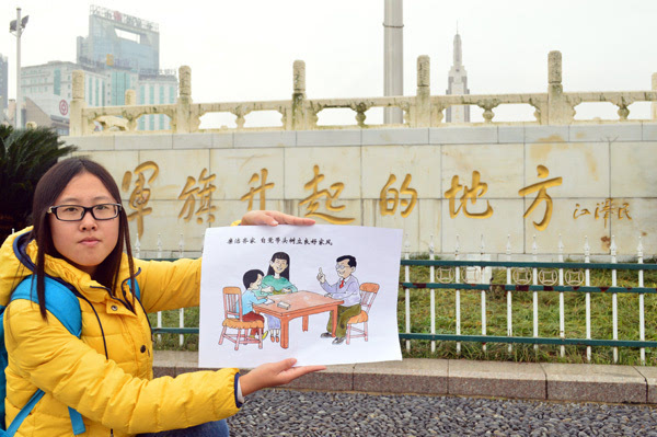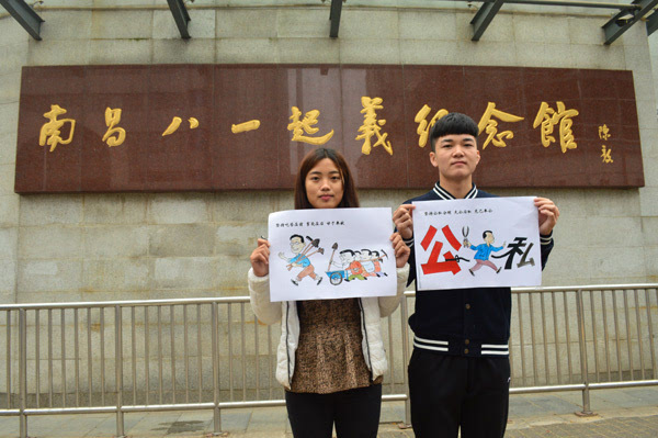 衣着简单朴素的干部、整洁干净的画风、简短浓缩的八条禁令……11月21日,华东交大八位入党积极分子将《中国共产党廉洁自律准则》以漫画的形式进行展现,并与南昌英雄城八一起义纪念塔、八一大桥、八一起义纪念馆、八一大道等多处“八一建筑”合影。