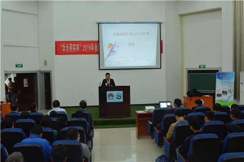 10月31日上午,比赛开幕式在华东交大14栋教学楼报告厅举行,信息学院罗晖院长在开幕式上致辞表示对比赛的热力支持。