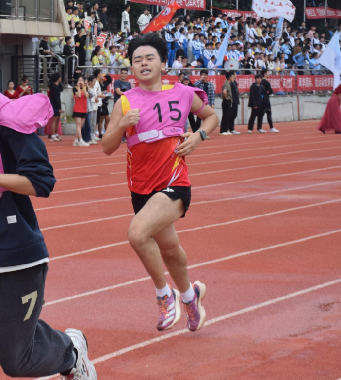 第四届校运会暨第四十一届田径项目比赛男子1500米比赛中,信息学院运动员张煜涵表现出色,荣获第四名的优秀成绩。