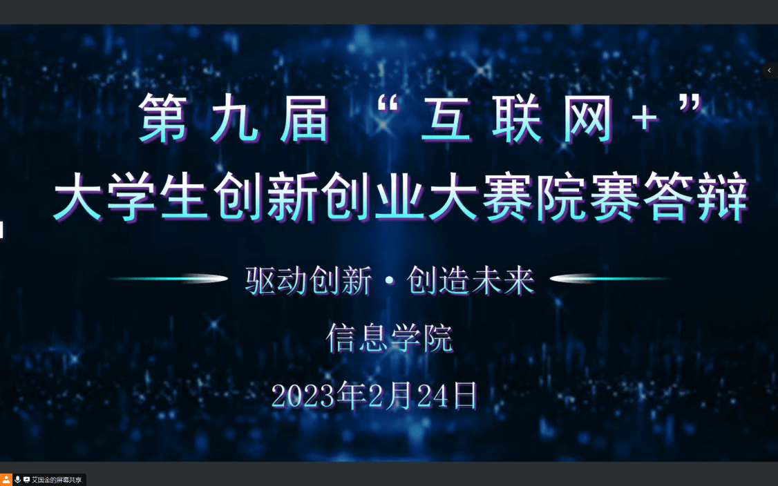 为深化人才培养综合改革,切实提高学生的创新精神、创业意识和创新创业能力,信息学院于2023年2月24日下午线上召开了“互联网+”大赛院赛评审会。本次选拔赛由学工办主任艾国金主持,刘志伟教授、创新基地主任涂春萍担任评委。