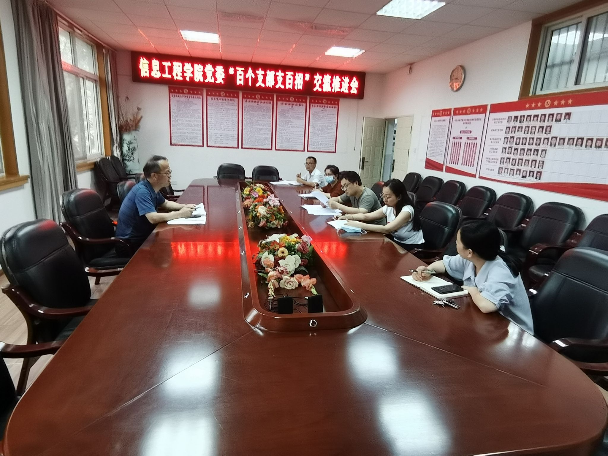 为落实学校党委召开的“百个支部支百招”交流推进会精神,进一步提升学院党支部支招方案的针对性,有效性,信息工程学院党委6月8日召开专题交流学习会,院党委书记何仲坚主持交流会,院党委组织员及全体教工党支部书记参会。
