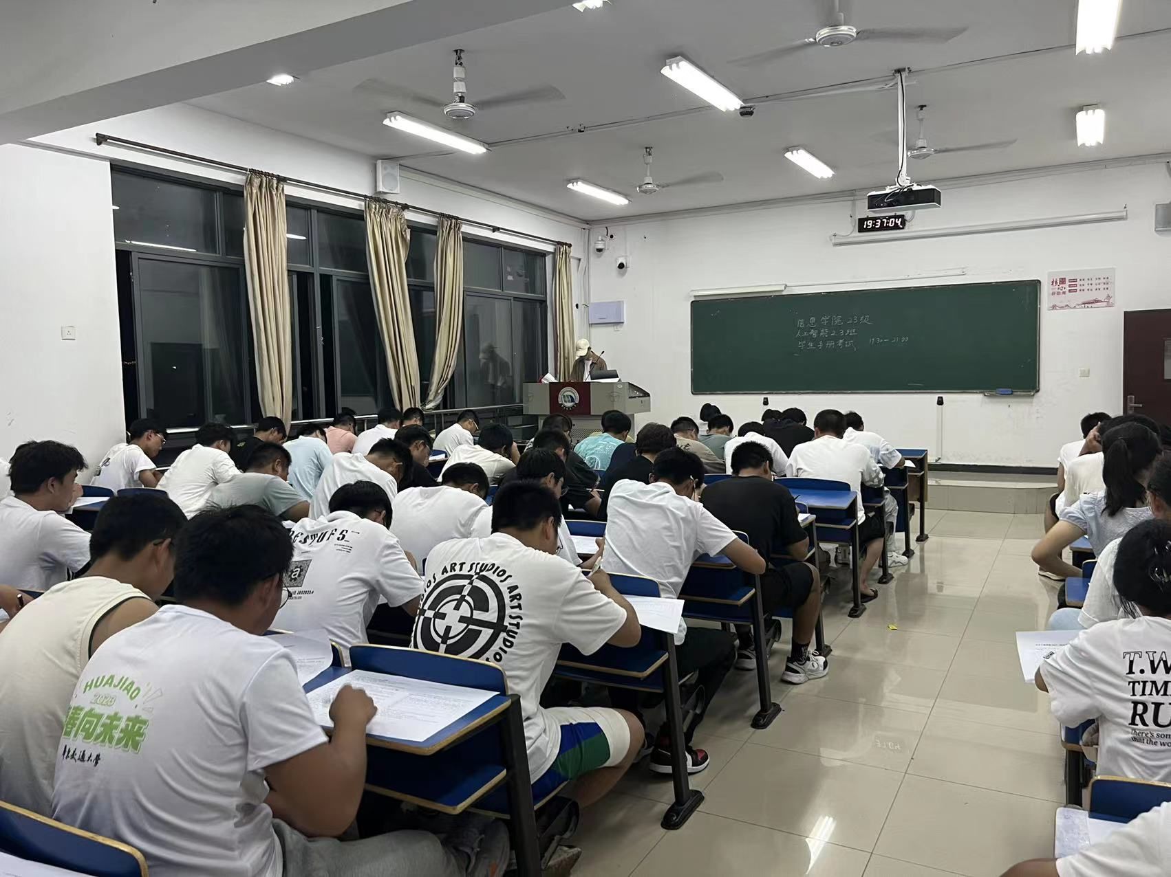 本次考试由各班带班党员担任监考,考试期间,新生们认真读题、仔细作答。信息学院学工办主任艾国金到新生考试现场进行巡考,并向带班党员了解新学生《学生手册》学习情况。
