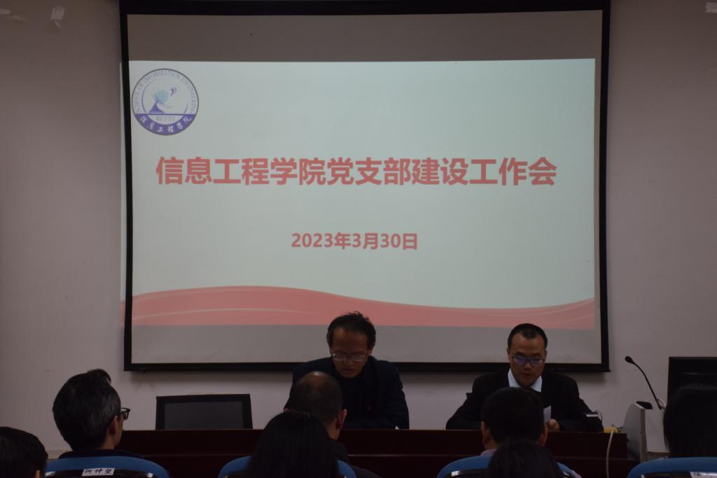 3月30日,信息工程学院于教4栋311召开党支部建设工作会议院党委书记何仲坚、学院全体党支部委员及党教中心负责同志参会。