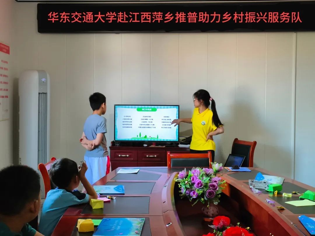 与国际学院联合组建的“追风青年”暑期实践队,成功入选2024年“推普助力乡村振兴”全国大学生暑期社会实践志愿服务活动,并于7月3日至9日在萍乡多乡镇开展推普活动。实践队以饱满热情和专业态度,深入乡村,通过入户宣传、问卷调研、支教课堂等多种形式,全面推广普通话。
