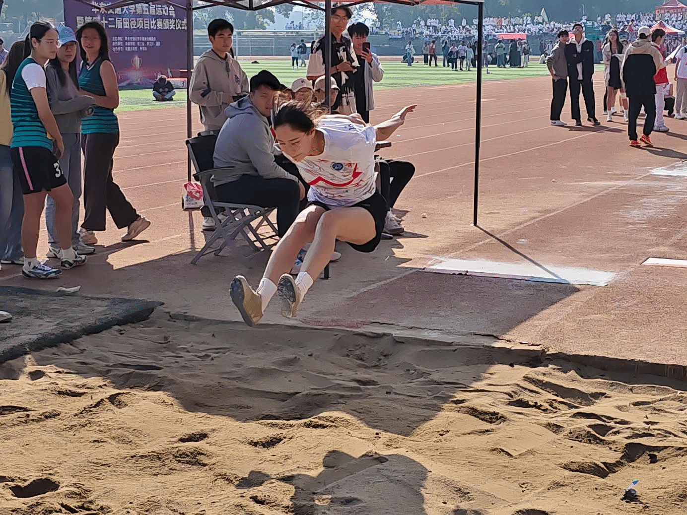 10月31日,在我校举行的第五届运动会暨第四十二届田径项目女子跳远决赛中,信工学院运动员李兰怡凭借惊人的爆发力从众多参赛选手中脱颖而出,荣获本届女子跳远项目季军!