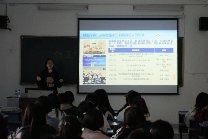 陈月攀以“目标与规划”为钥,开启了分享之门。他细致梳理了自己从竞赛小白到国奖获得者,最终成功推免至西安电子科技大学的进阶之路。“尽早确立目标,并为之制定清晰的规划图,”他强调,“每一次竞赛的历练,不仅是技能的提升,更是心态和视野的锻造。”