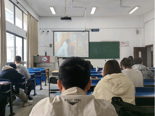 观影现场静谧而庄重,同学们神情专注。“感动中国”组委会授予吕明玉的颁奖词字字铿锵、直击人心:“为陌生人两次捐献造血干细胞,跨越生死;为乡亲们三年驻守薄弱村,走向富裕,脚下有泥,手上有力,心中有光。” 真挚话语引发同学们强烈共鸣,也为整场活动奠定了礼赞奉献的情感基调。